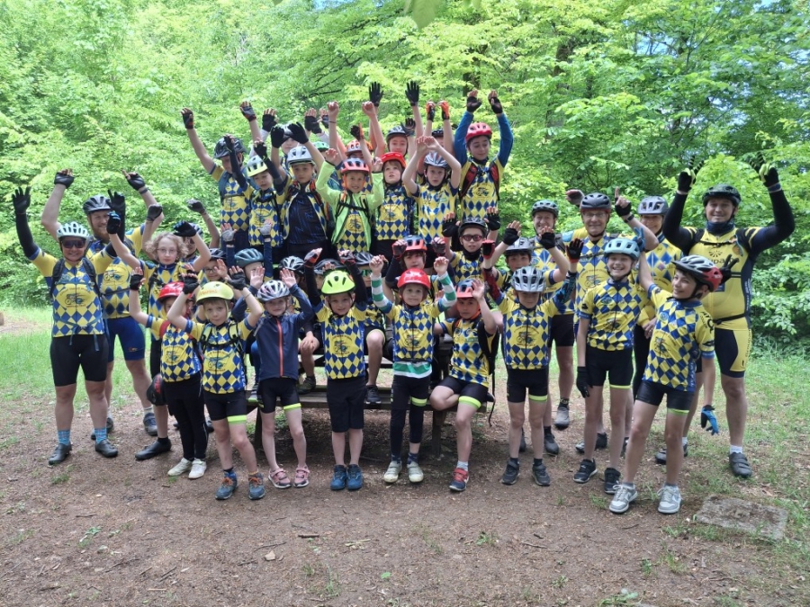 Une partie des jeunes de l’école de vtt 2018/2019 avec leurs éducateurs.